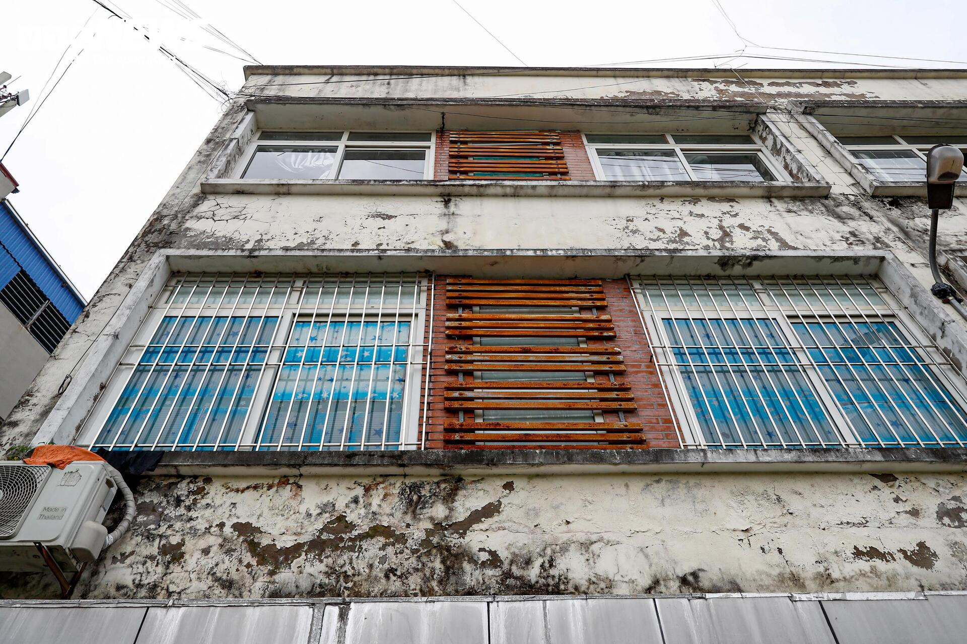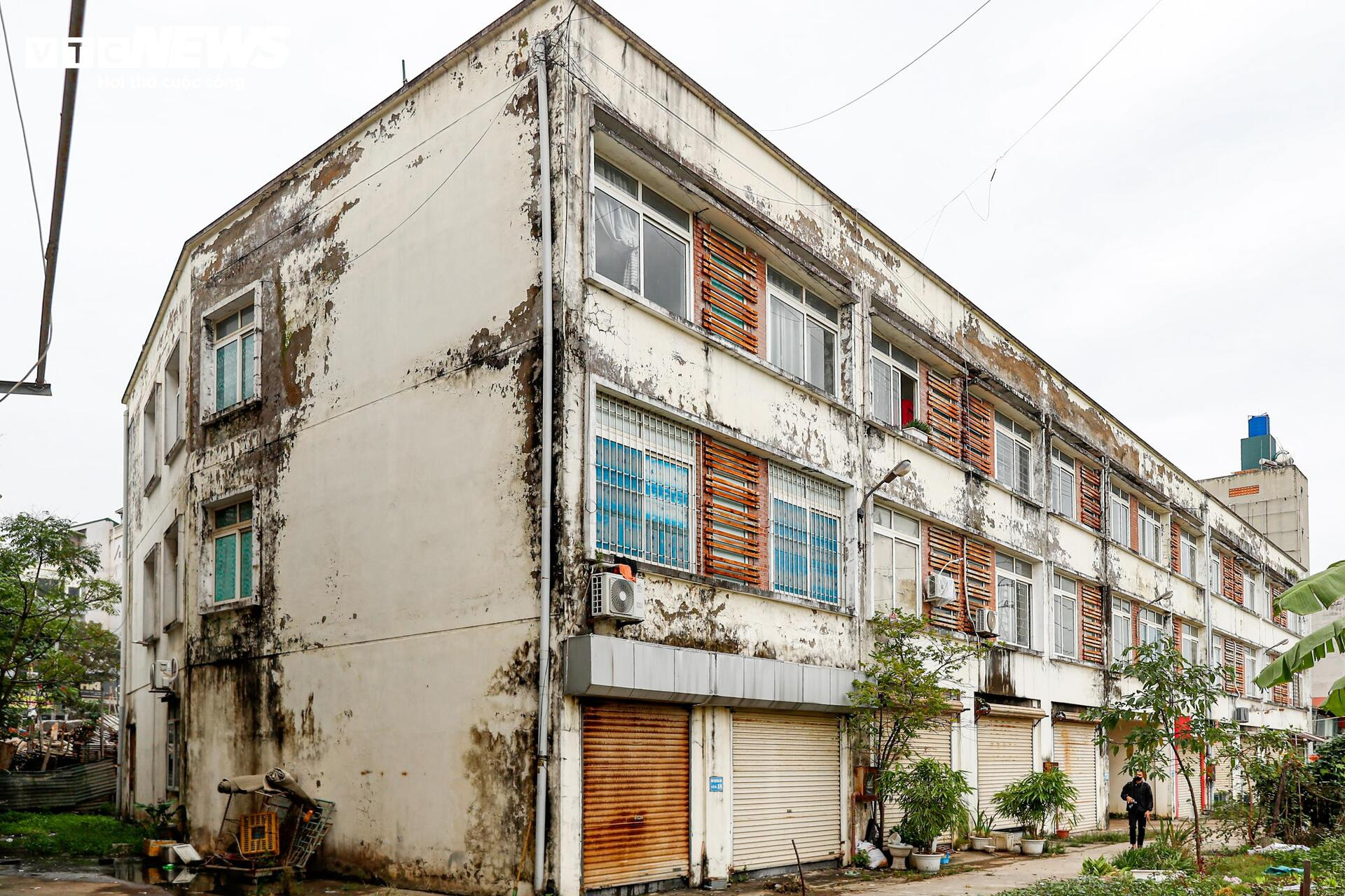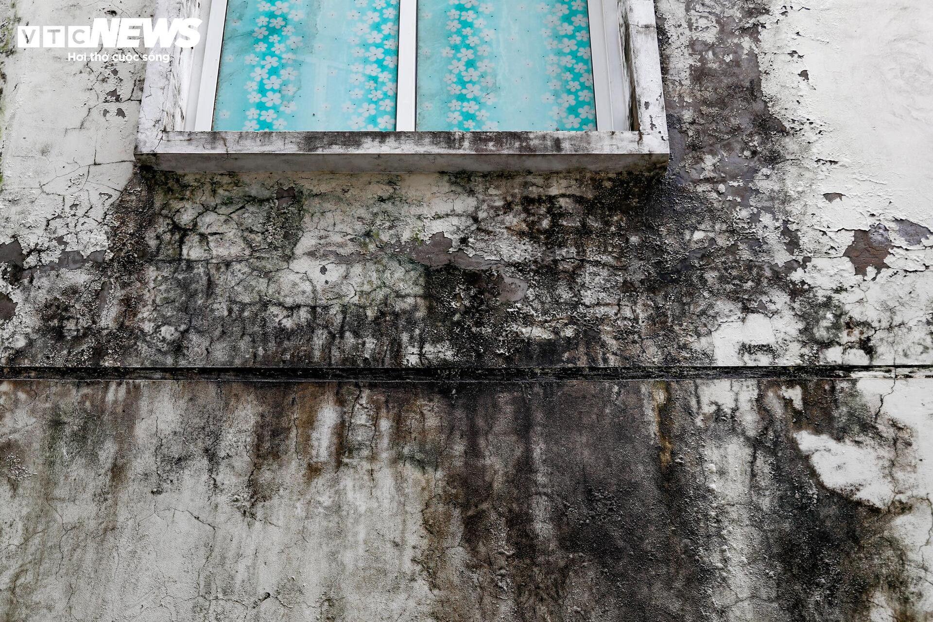 Nhiều mảng tường tại chợ bong tróc, loang lổ và xuống cấp nghiêm trọng theo thời gian.