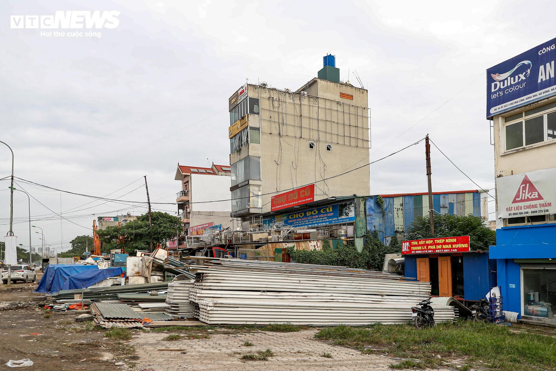 Vật liệu xây dựng từ một cửa hàng được xếp chất đống ngay bên ngoài khu vực chợ.