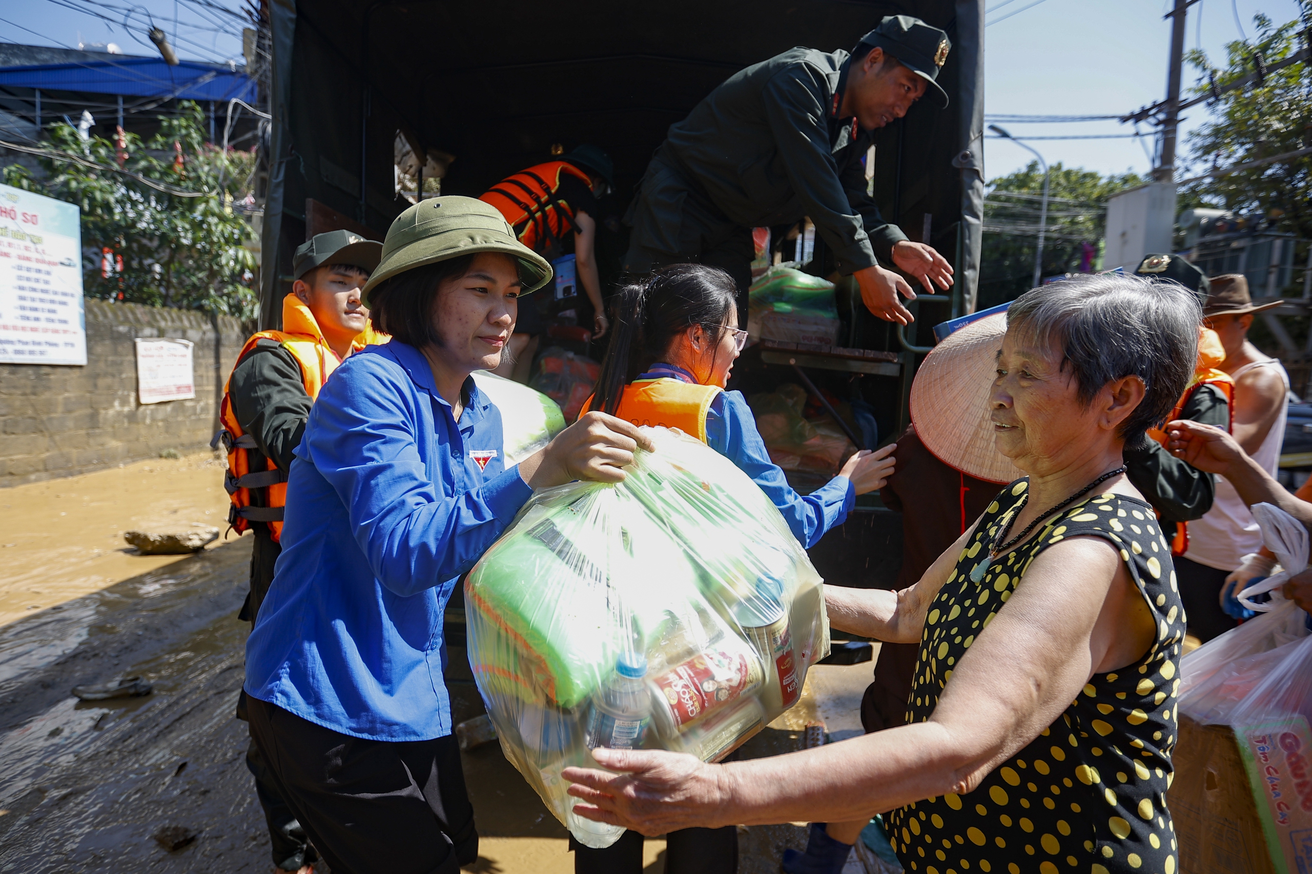 Đến ngày 9.10, xe cứu trợ đã tiếp cận được các hộ dân để chuyển đồ tiếp tế sau 3 ngày bị cô lập