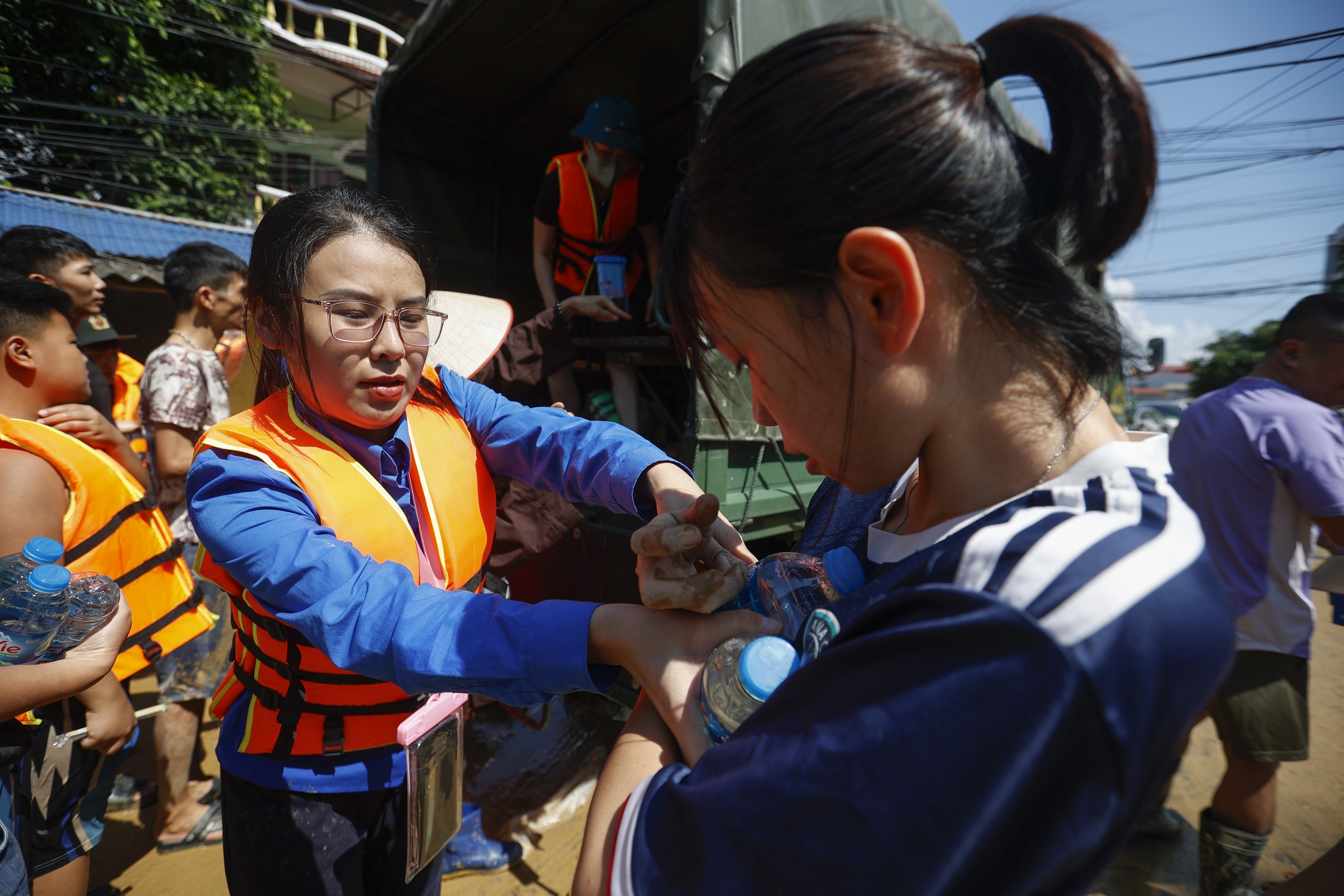 Không còn đồ ăn, nước sạch để sinh hoạt trong những ngày qua, các em nhỏ được lực lượng chức năng đưa đi lánh nạn