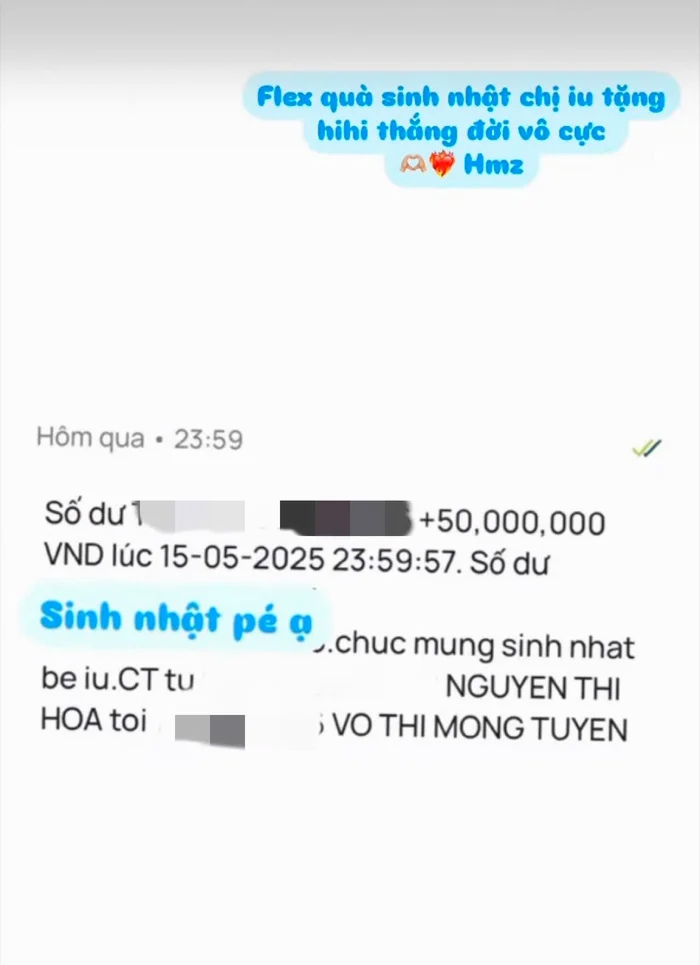 Hòa Minzy chuyển khoản nóng 50 triệu đồng và tặng chiếc điện thoại nhân dịp sinh nhật trợ lý vào năm 2025.