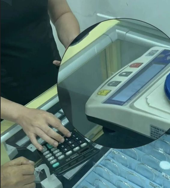 Trong một cuộc kiểm tra đột xuất, lực lượng chứng năng Trung Quốc đã phát hiện tại cửa hàng này một cân điện tử dùng để thanh toán giao dịch vàng nhưng không có tem kiểm định đạt chuẩn theo quy định. Ban đầu, khi sử dụng quả cân tiêu chuẩn để kiểm tra, thiết bị vẫn hiển thị kết quả chính xác.
