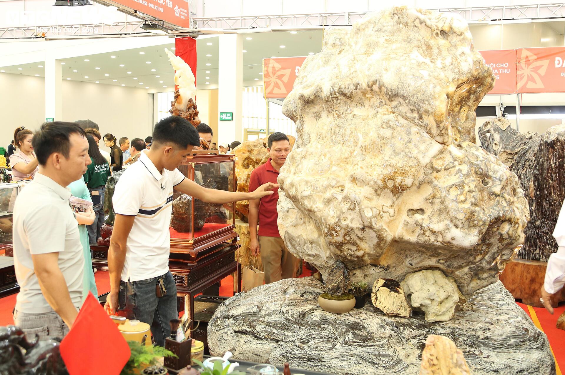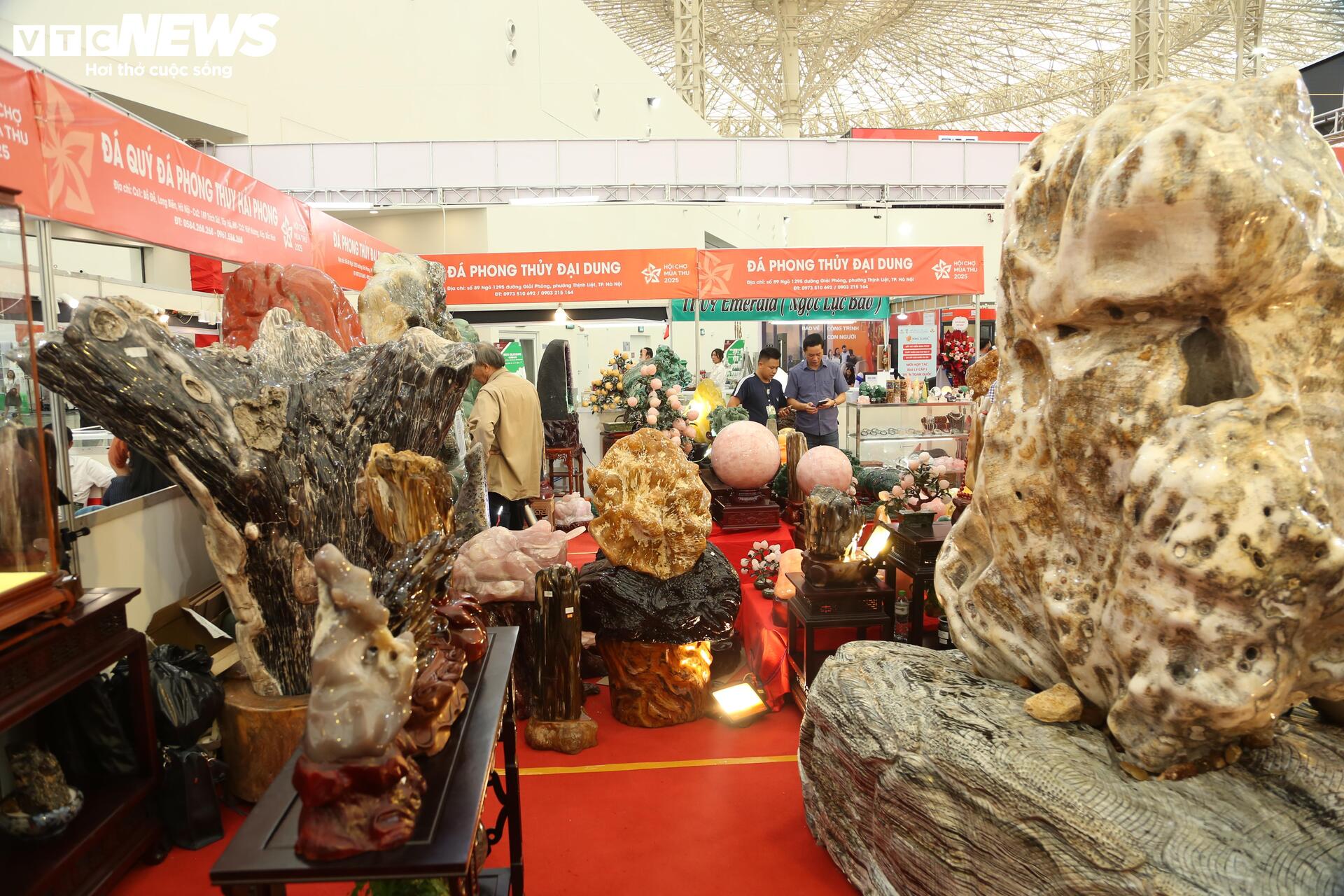 Theo ghi nhận, gian hàng bày bán các sản phẩm đá quý độc lạ, đắt đỏ này đang thu hút sự quan tâm của rất nhiều khách tham quan hội chợ.