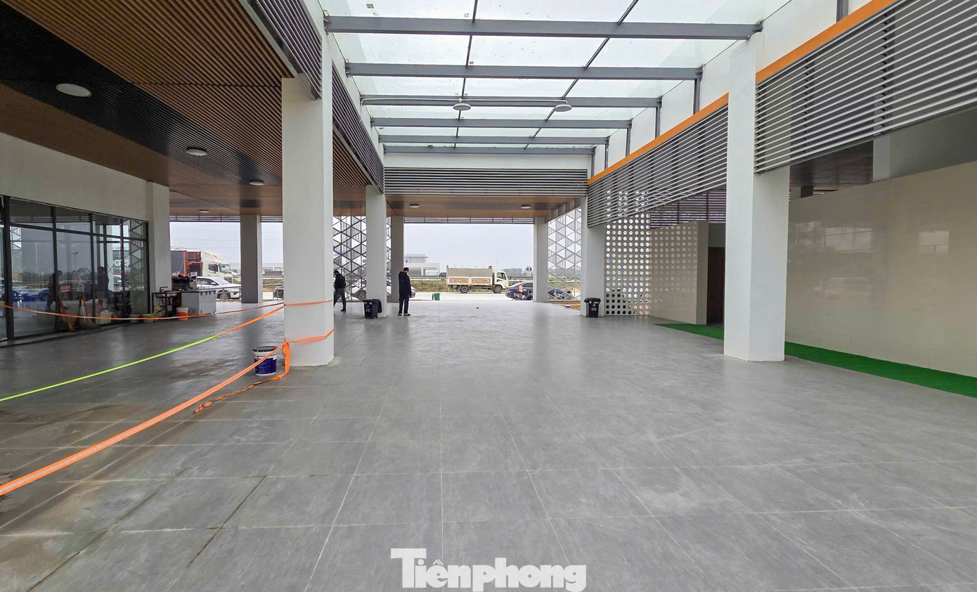 Phía bên trong nhà tại trạm dừng nghỉ chưa có các trang thiết bị, cửa hàng phục vụ ăn uống.