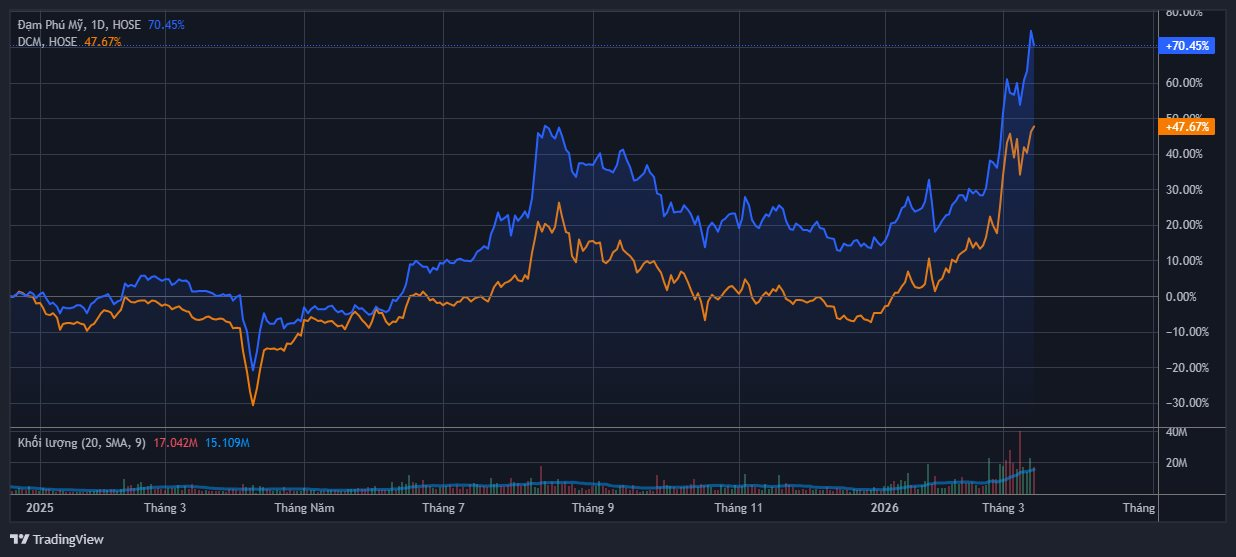 Thực tế, trên sàn chứng khoán, bộ đôi cổ phiếu DPM và DCM đã có những diễn biến tăng giá tương đối tích cực thời gian gần đây, phản ánh kỳ vọng của nhà đầu tư. Chốt phiên 13/3, cổ phiếu DPM và DCM lần lượt đóng cửa tại mốc 33.200 đồng/cp và 47.900 đồng/cp. Dù điều chỉnh song cả 2 mã này đều đang ở vùng đỉnh lịch sử. Tính từ đầu năm, bộ đôi cổ phiếu này đã bật tăng khoảng 50%-55% giá trị.