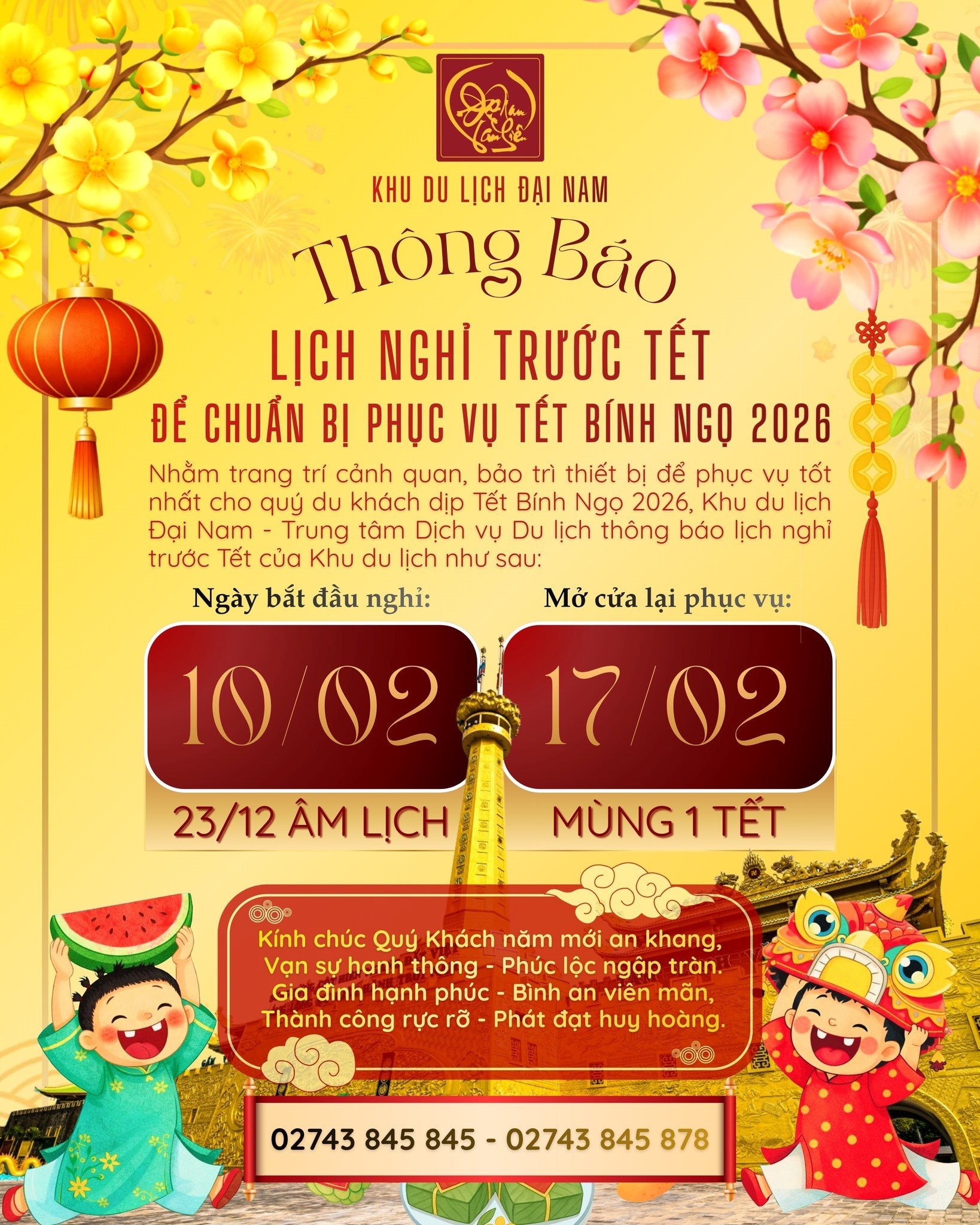 Trong thông báo, đơn vị này cho biết việc đóng cửa này này nhằm trang trí cảnh quan, bảo trì thiết bị để phục vụ tốt nhất cho du khách vào dịp Tết Bính Ngọ 2026.