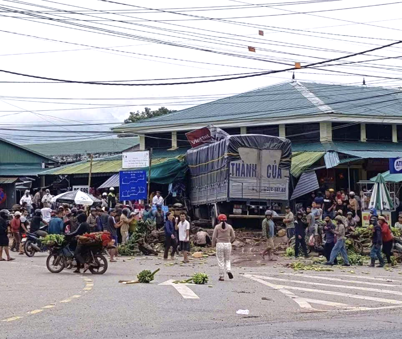 Xe tải lao thẳng vào chợ chuối Tân Long, tỉnh Quảng Trị khiến 6 người thương vong.