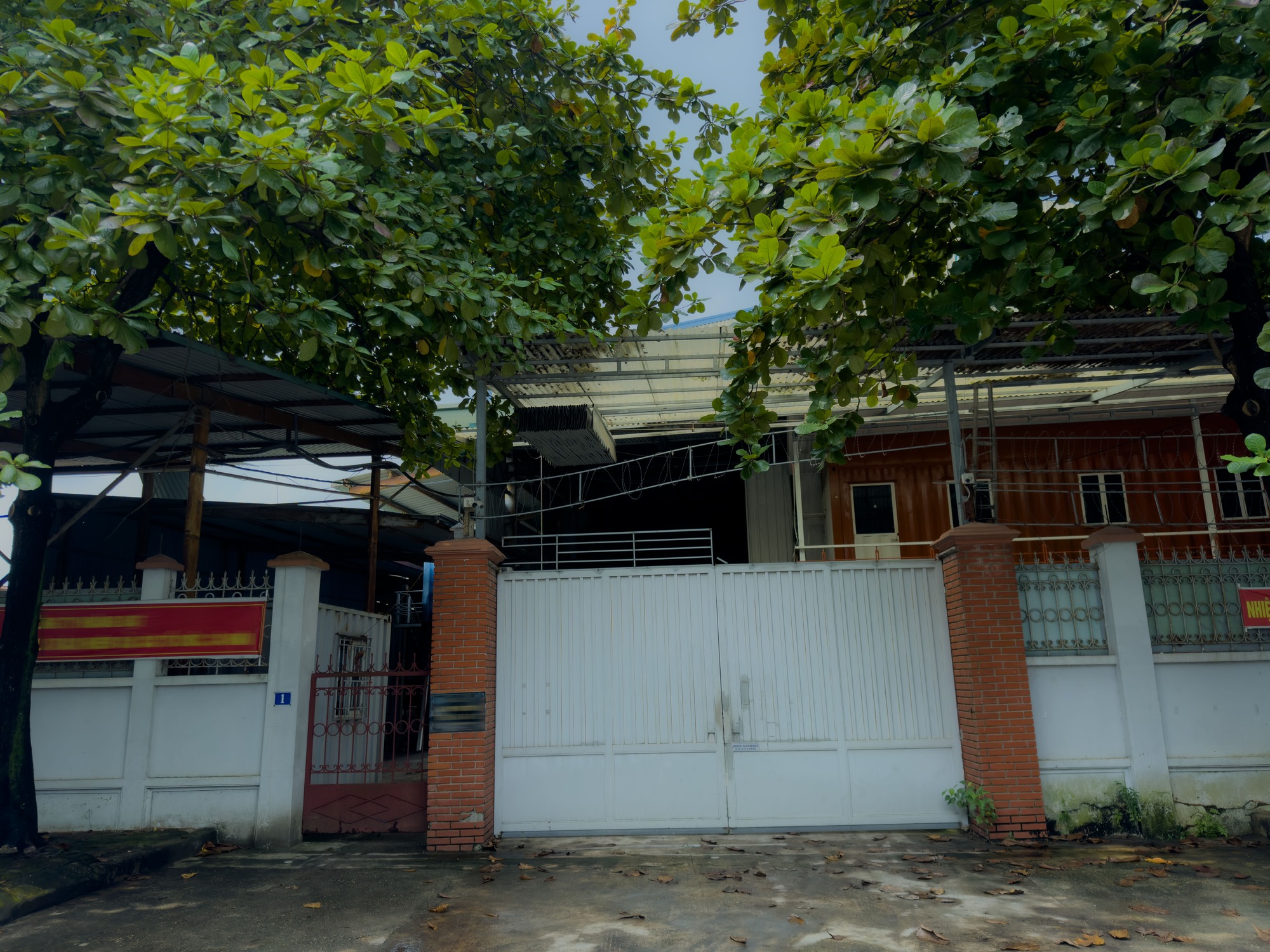 Bên ngoài công ty dược phẩm - nơi sản xuất sản phẩm giảm cân cho Ngân 98 cửa đóng then cài, không có dấu hiệu hoạt động
