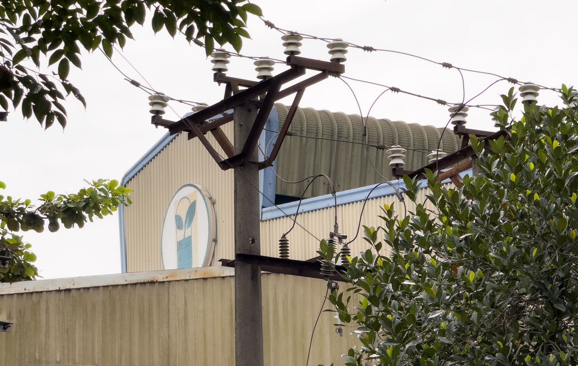 Bên trong khu vực nhà xưởng vẫn còn logo cũ của công ty được gắn trước đó chưa tháo dỡ