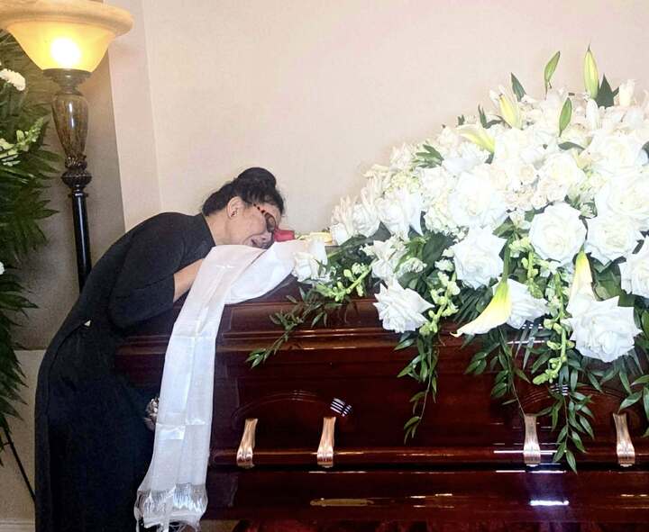 Mẹ nam ca sĩ khóc lặng bên linh cữu.
