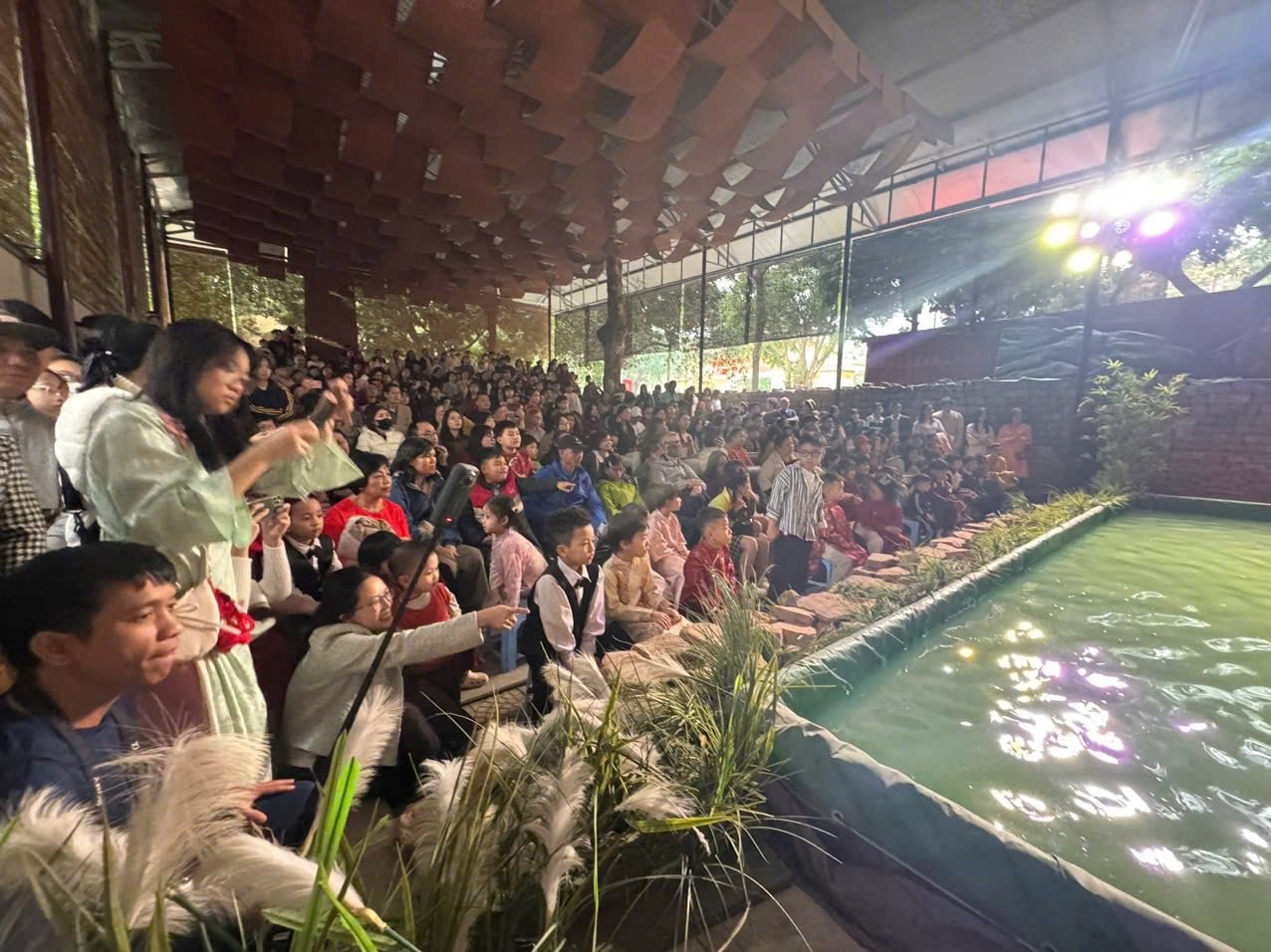 Khu biểu diễn múa rối nước trong Hoàng thành Thăng Long thu hút rất đông người dân và du khách. Ảnh: Hoàng Quyên.