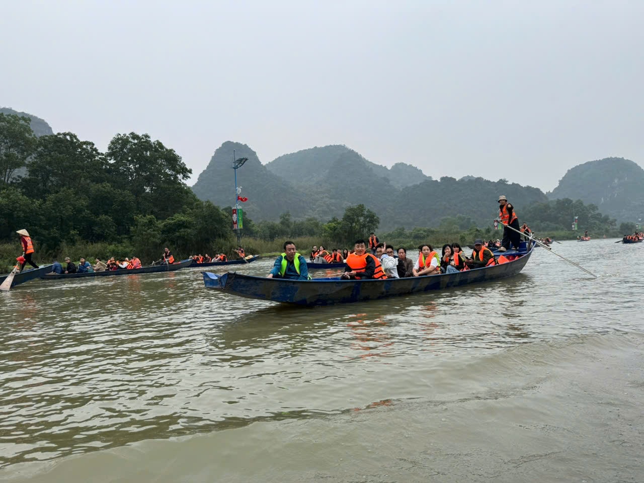 Dù ghi nhận lượng khách tăng đột biến, tình hình an ninh trật tự tại chùa Hương vẫn được duy trì ổn định, không để xảy ra tình trạng lộn xộn hay mất an toàn.