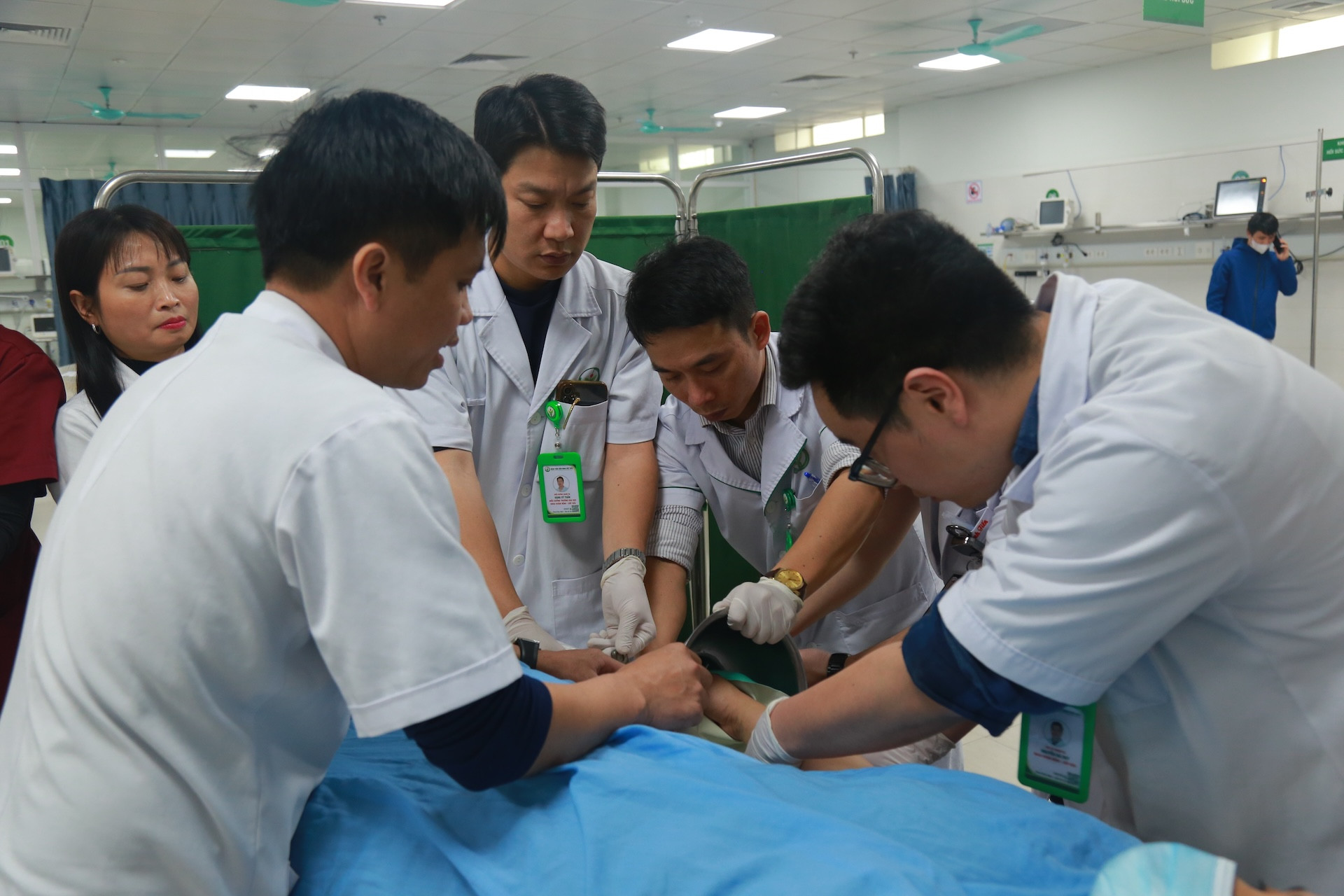 "Trước tình huống khẩn cấp, các bác sĩ đã nhanh chóng tiến hành thăm khám, đánh giá mức độ tổn thương và khẩn trương đưa người bệnh vào phẫu thuật cấp cứu", bác sĩ Tiến cho biết.