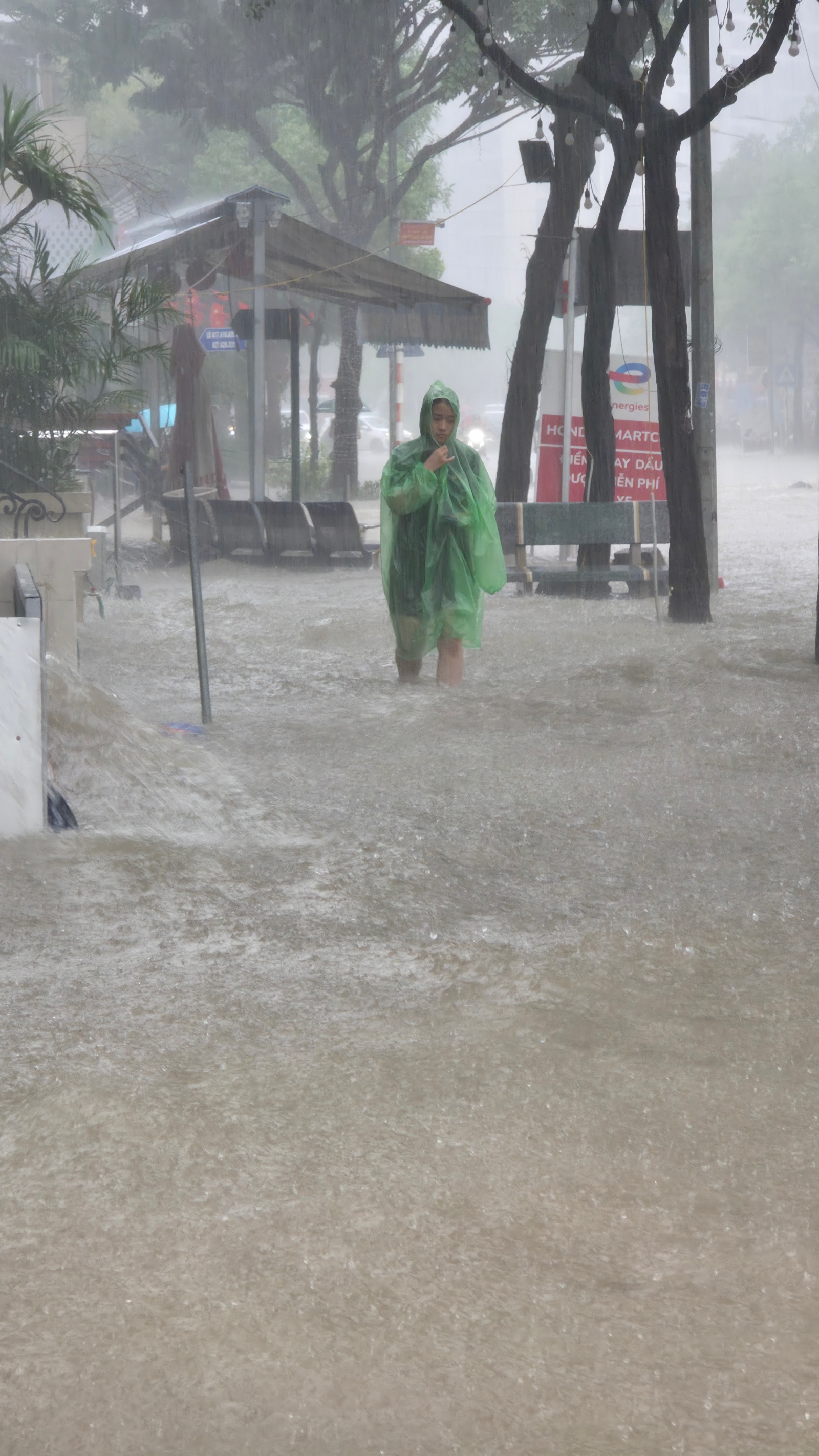 Mưa lớn kéo dài nhiều giờ khiến việc đi lại của người dân gặp nhiều khó khăn