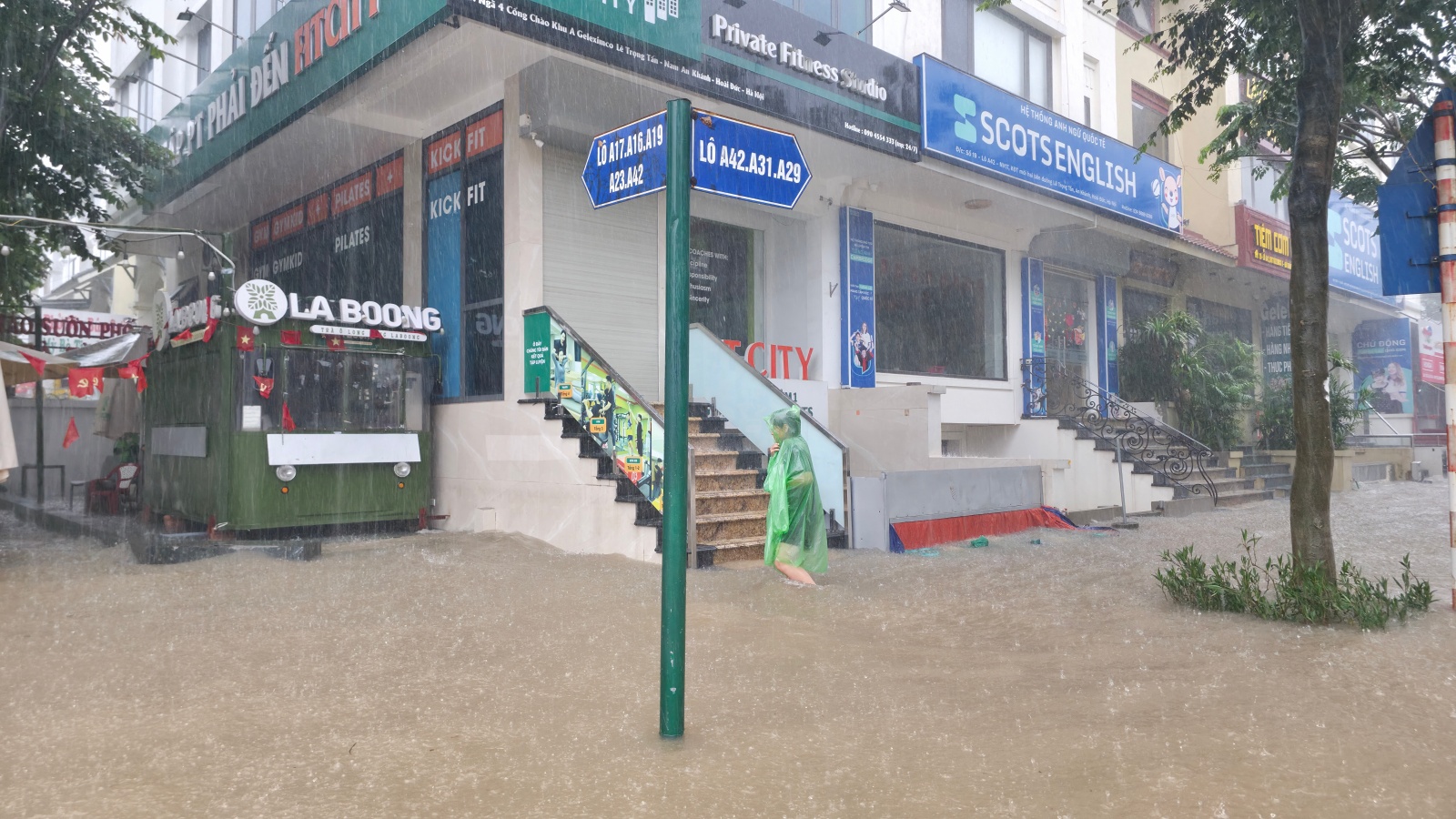 Sau đêm mưa kéo dài bởi hoàn lưu bão Bualoi, khu đô thị Nam An Khánh và Geleximco ngập sâu