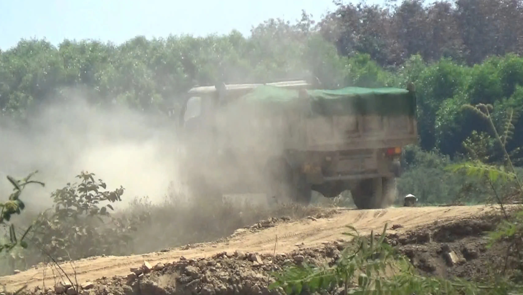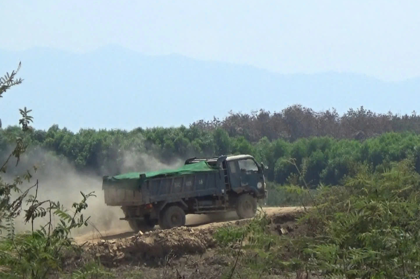 Lúc này, xe cuốc đất màu vàng múc từng gàu đất sét đưa lên thùng xe. Khi đất cao vượt thành thùng khoảng 50 cm, máy cuốc thực hiện thao tác ém, đè chặt xuống cho đầy. Sau đó, tài xế leo lên thùng xe phủ bạt che chắn trước khi nổ máy rời đi. Do chở hàng nặng, xe ben nhả khói đen mỗi khi tài xế đạp ga vào số, ì ạch hướng ra đường tỉnh 766 hoặc Mê Pu – Đa Kai. Đến khoảng 13 giờ cùng ngày, một xe cuốc màu xanh được tăng cường, cho thấy quy mô khai thác ngày càng được đẩy mạnh.