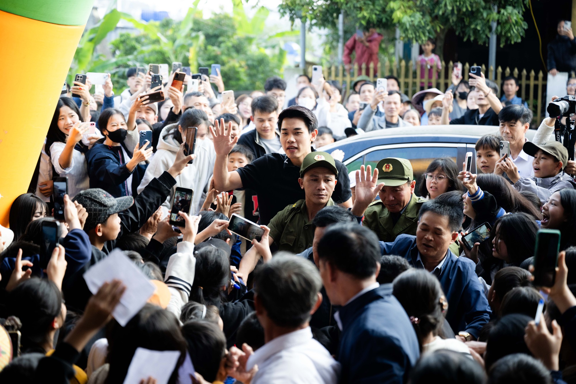 Rất đông người vây quanh xe khi Đình Bắc xuất hiện (Ảnh: Như Hoàn)