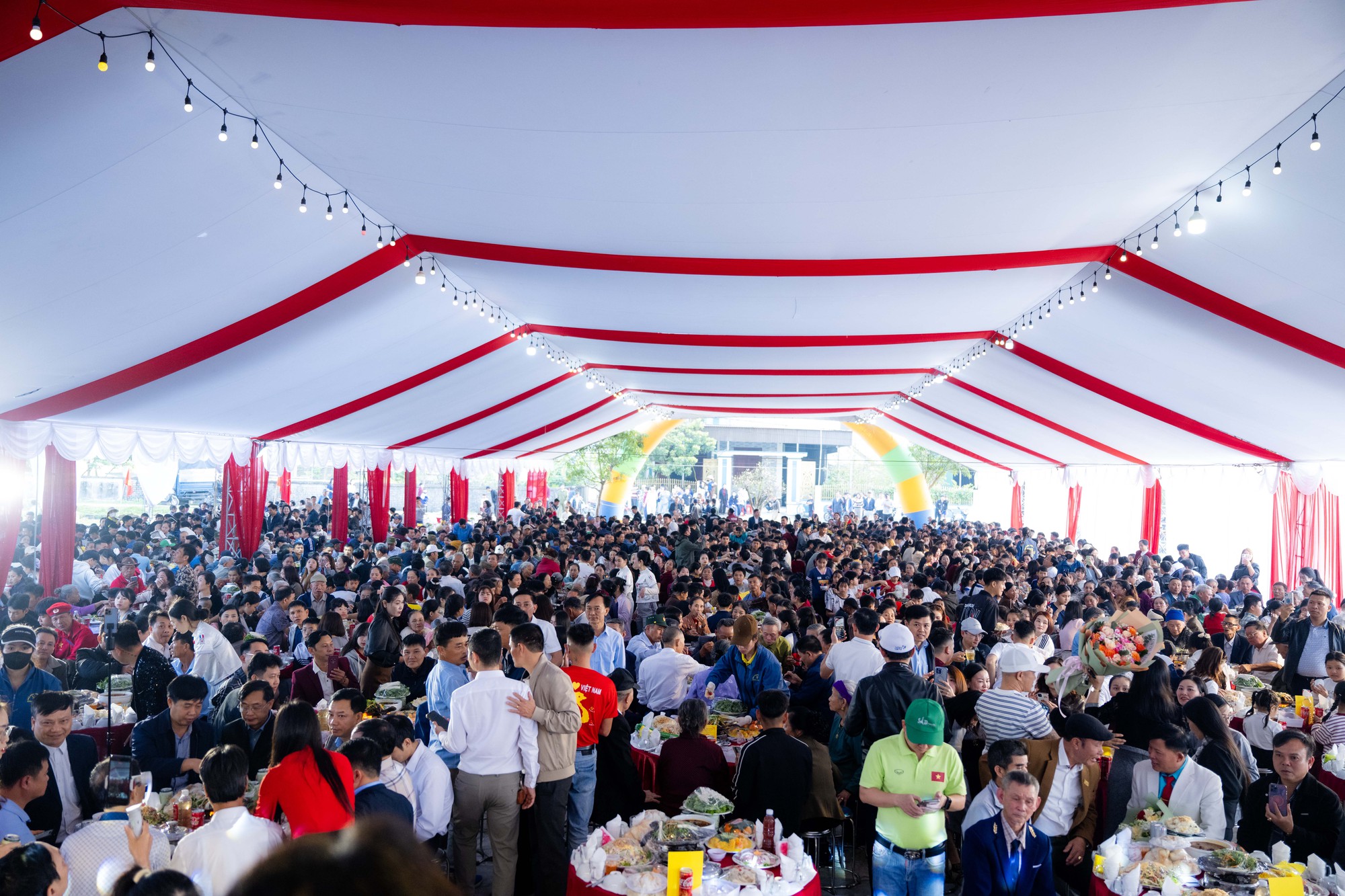 Từ khá sớm, bà con lối xóm cùng nhiều người hâm mộ đã có mặt, tạo nên bầu không khí rộn ràng, háo hức. Theo ghi nhận, gia đình nam cầu thủ đã đặt tổng cộng 180 mâm cỗ, tương đương khoảng 1.800 khách mời, chủ yếu là người dân trong vùng và những người yêu mến Đình Bắc.