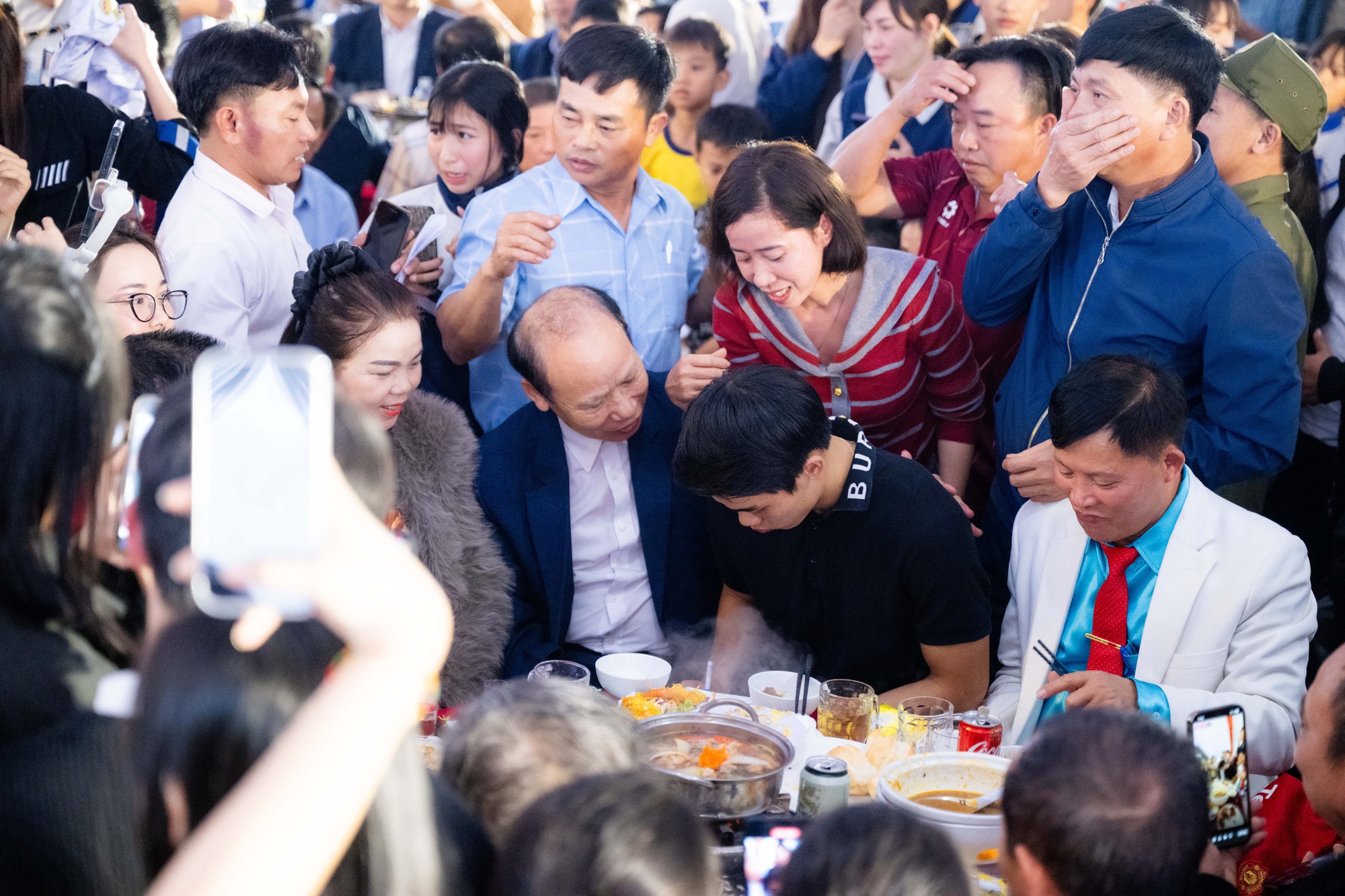 Khi bữa tiệc chính thức diễn ra, lượng người đổ về ngày một đông, thậm chí vượt quá số lượng khách dự kiến ban đầu. Rất nhiều người hâm mộ đã tìm đến tận nơi chỉ để tận mắt chào đón cầu thủ trẻ, khiến không khí càng thêm sôi động. Đám đông quá lớn khiến Đình Bắc gặp khó khăn khi di chuyển vào bên trong khu vực tổ chức tiệc, buộc lực lượng chức năng phải hỗ trợ để đảm bảo trật tự.