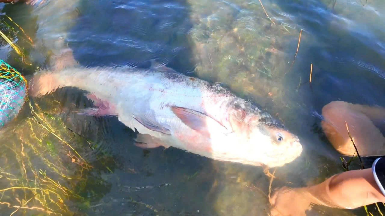 Nhiều người bắt được cá lớn, có con nặng hơn chục kg, chủ yếu là cá mè nhưng đợt này lượng cá không nhiều vì lý do thời gian nhà máy xả tràn ngắn, lượng nước xả không lớn.