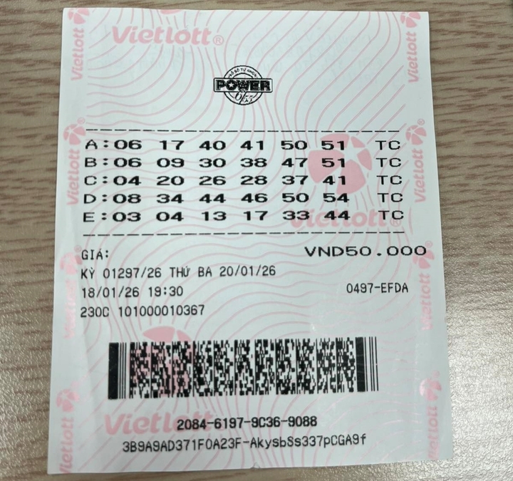 Được biết, tấm vé may mắn trúng độc đắc của ông N. có bộ số gồm: 04-20-26-28-37-41. Tấm vé này được mua tại điểm kinh doanh trên đường Trần Phú, phường An Đông, TP.HCM.