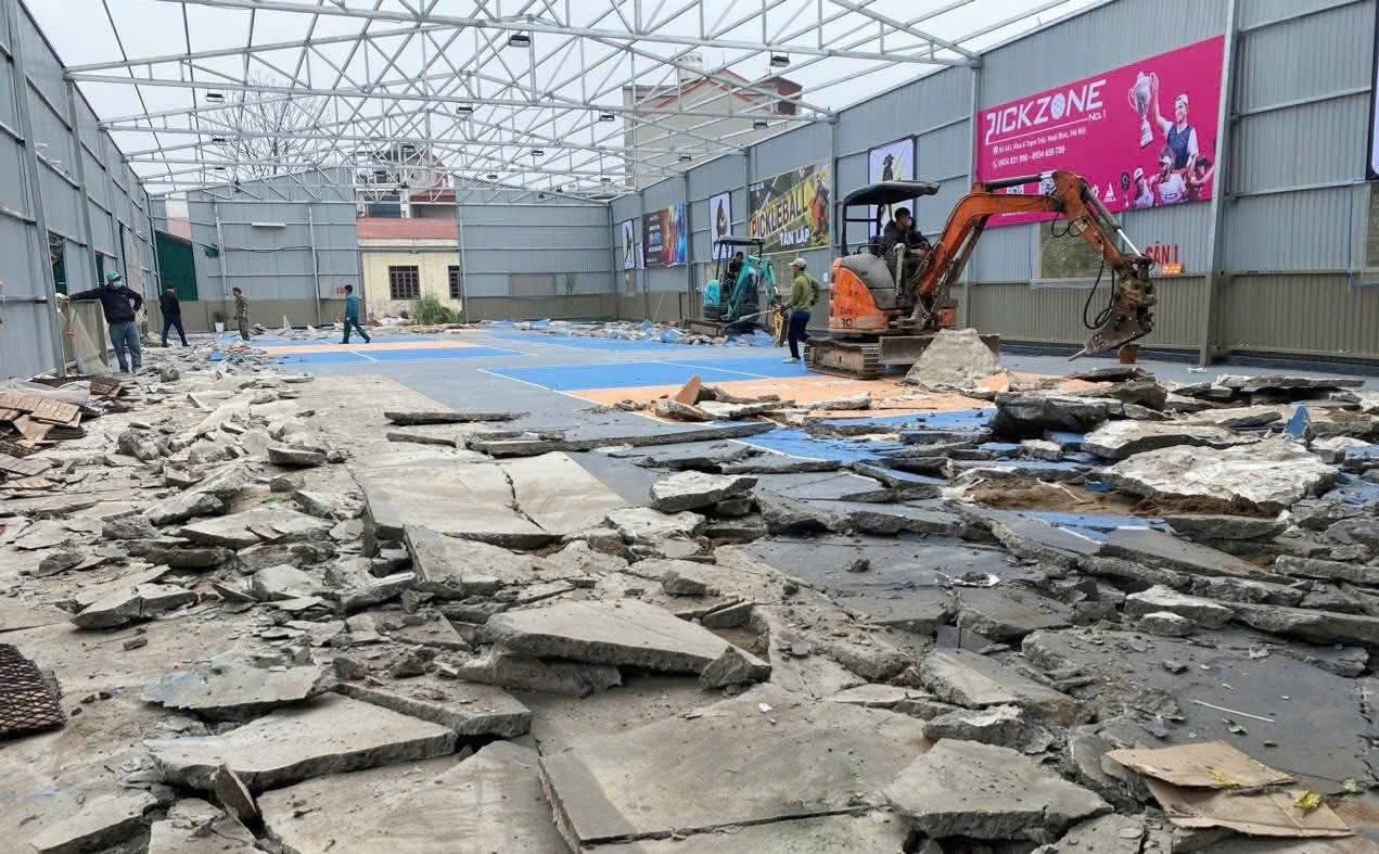 UBND xã Ô Diên cưỡng chế tháo dỡ sân Pickleball xây dựng trên đất nông nghiệp.