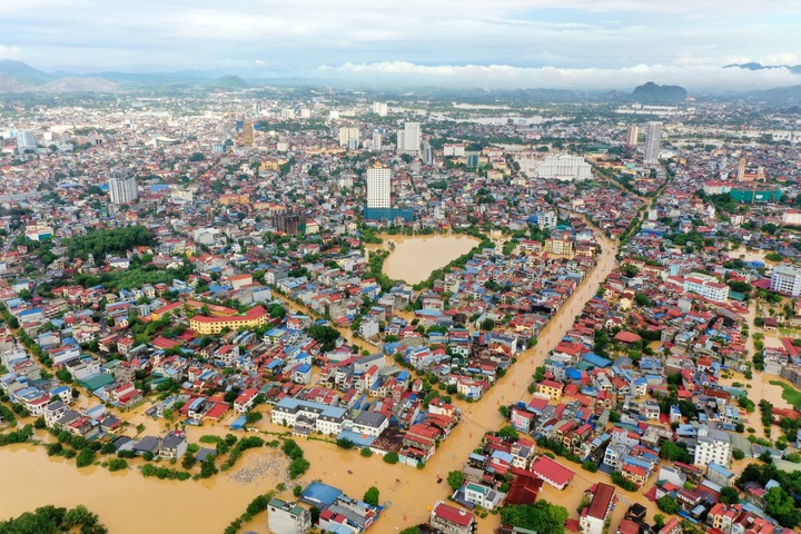 Trung tâm Thái Nguyên chìm sâu trong biển nước.(Ảnh: Lê Khắc Duy).