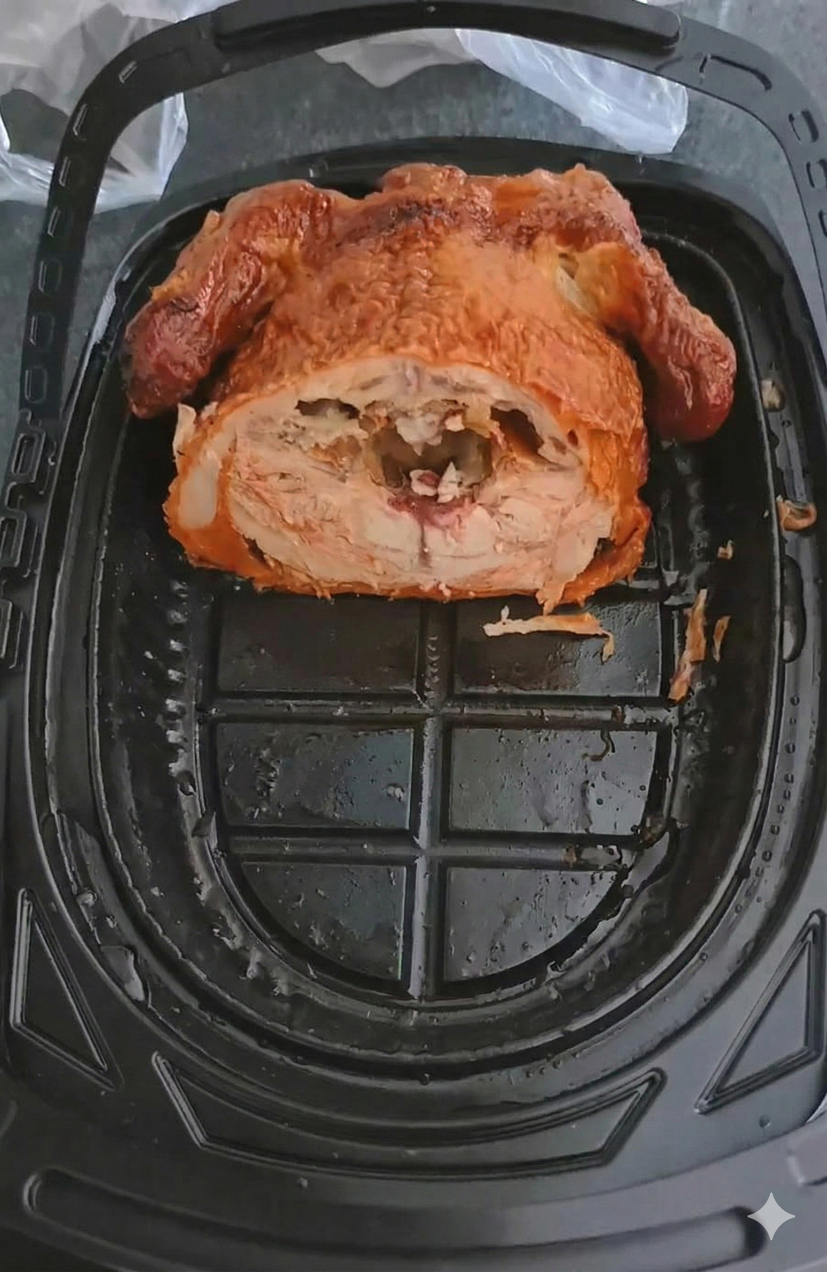 Mới đây, mạng xã hội Trung Quốc xôn xao trước câu chuyện một phụ huynh nhờ con đang học đại học chặt giúp con gà quay làm đôi: một nửa ăn ngay, một nửa cất đi. Kết quả khiến vị phụ huynh "muốn xỉu" khi thấy con gà bị chặt ngang lưng, chỉ còn lại... nửa thân dưới. Thay vì bổ dọc để phần nào cũng có đủ da thịt, bạn sinh viên này lại chia đôi theo nghĩa đen phẳng lỳ như đo thước.