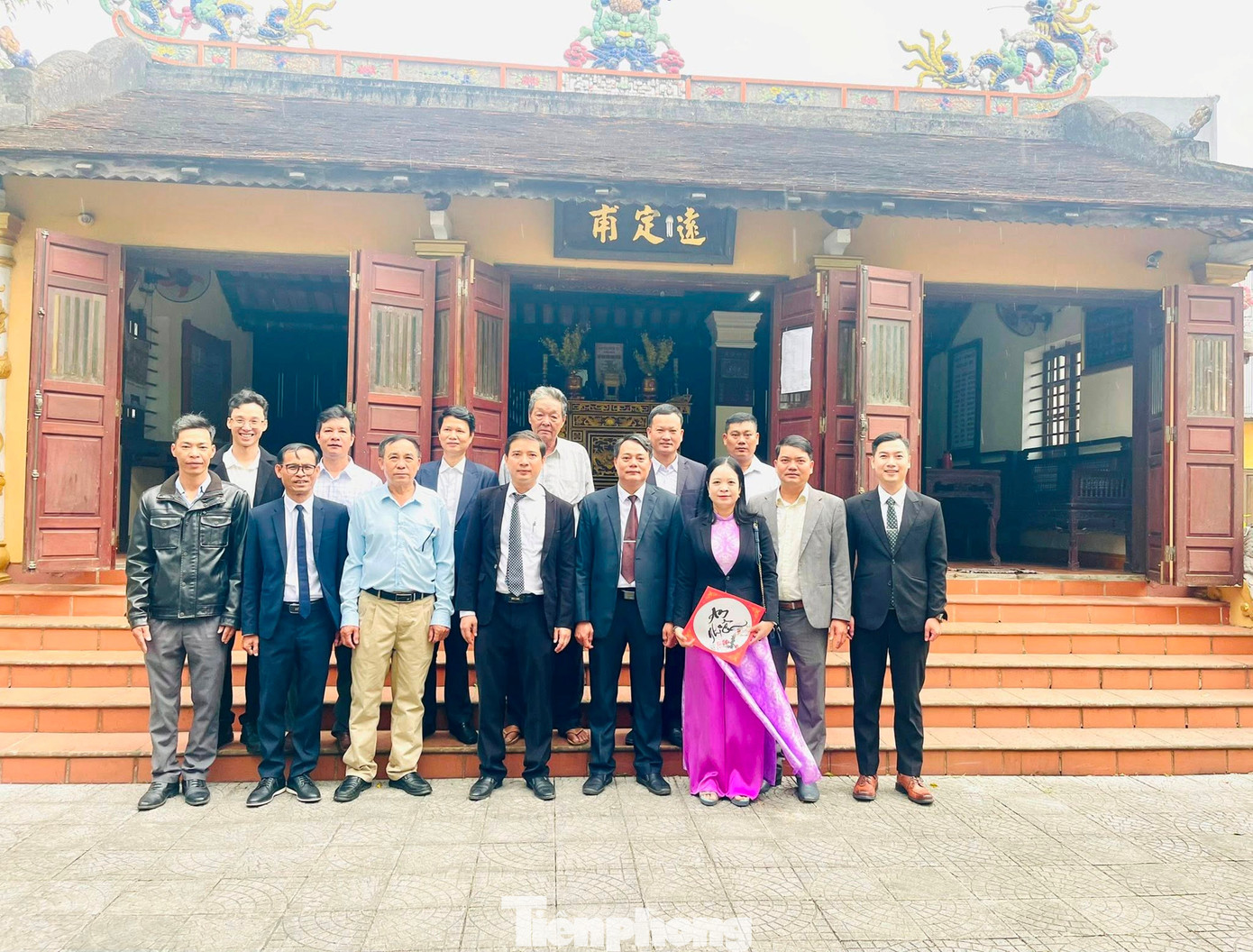 Theo sử liệu, Định Viễn Quận Vương Nguyễn Phúc Bính, hoàng tử - con trai thứ 6 của vua Gia Long, là người khởi xướng việc tổ chức chợ Tết Gia Lạc vào dịp Tết Nguyên đán dưới triều vua Minh Mạng (1820 - 1840). Ý tưởng này xuất phát từ mong muốn tạo nên một không gian vui chơi và giao lưu trong dịp xuân cho hoàng thân, quan lại và dần rộng mở đến cả tầng lớp dân chúng (trong ảnh, lãnh đạo UBND phường Mỹ Thượng đi thăm, chụp hình lưu niệm tại phủ Định Viễn Quận Vương trong ngày đầu tổ chức phiên chợ Gia Lạc nhân Tết Bính Ngọ 2026).