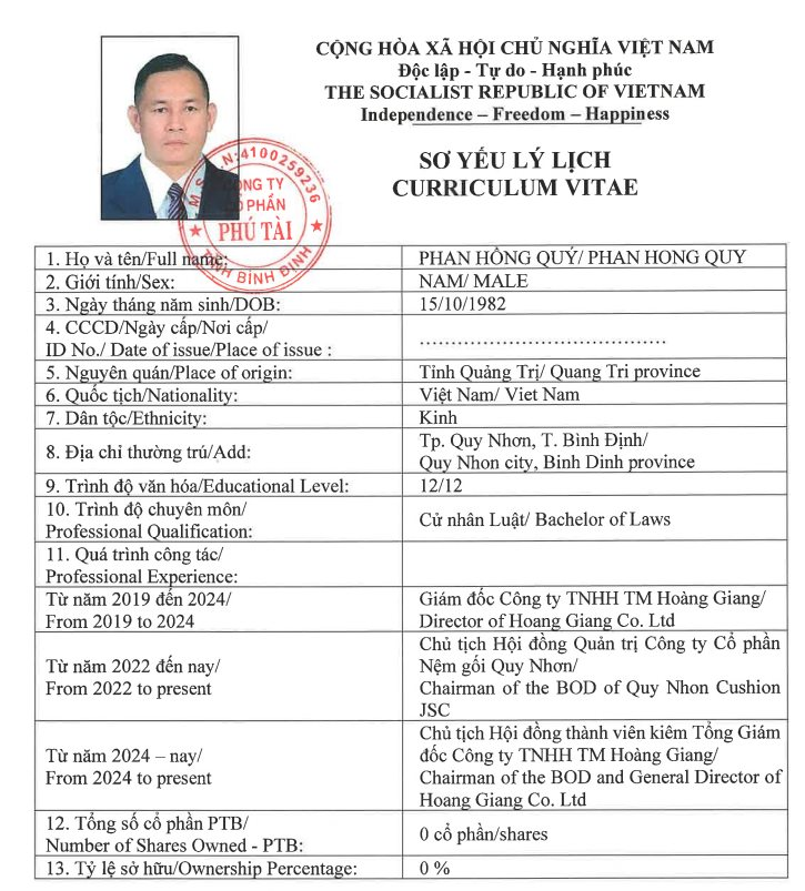 Trước đó, ngày 6/5/2025, CTCP Phú Tài nhận được đơn xin từ nhiệm của ông Đỗ Xuân Lập – Thành viên Hội đồng quản trị độc lập công ty.