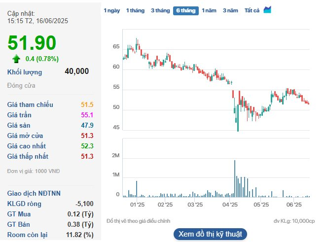 Trên thị trường chứng khoán, đóng cửa phiên giao dịch ngày 16/6, cổ phiếu PTB có giá là 51.900 đồng/cp, giảm 20% so với đầu năm 2025.