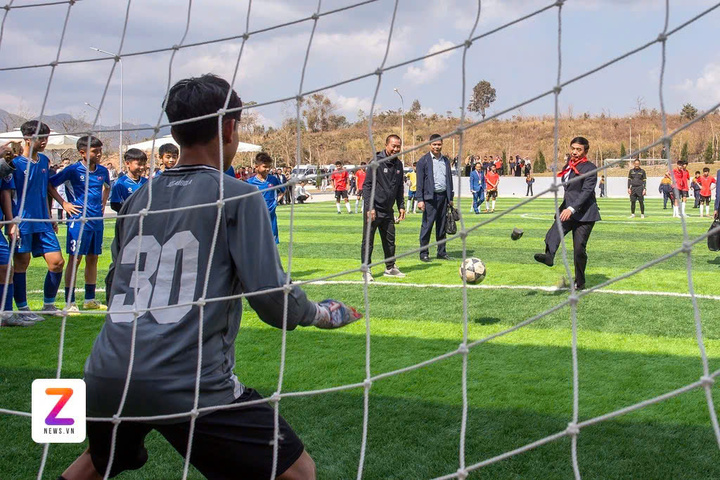 Bộ trưởng Quốc phòng Phan Văn Giang sút luân lưu trong khi Bộ trưởng Công an Lương Tam Quang làm thủ môn.
