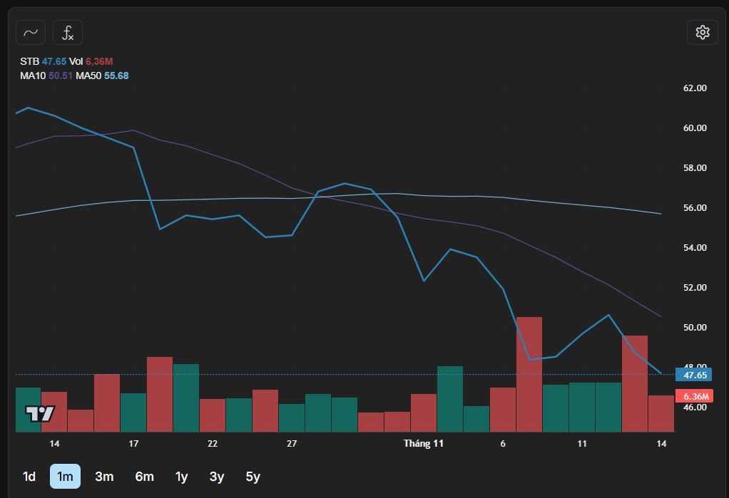 Diễn biến thị giá của cổ phiếu STB trong 1 tháng qua. Nguồn: FireAnt