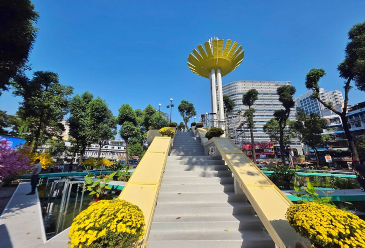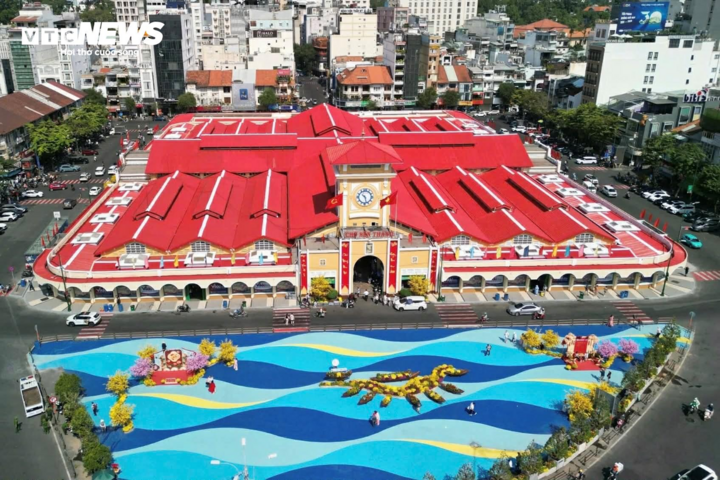 Còn quảng trường trước chợ Bến Thành chỉ mang tính tạm thời trong giai đoạn chờ công trình ngầm. Doanh nghiệp lựa chọn họa tiết hình sóng, với màu sắc tươi mới, phục vụ người dân và du khách trong dịp Tết.