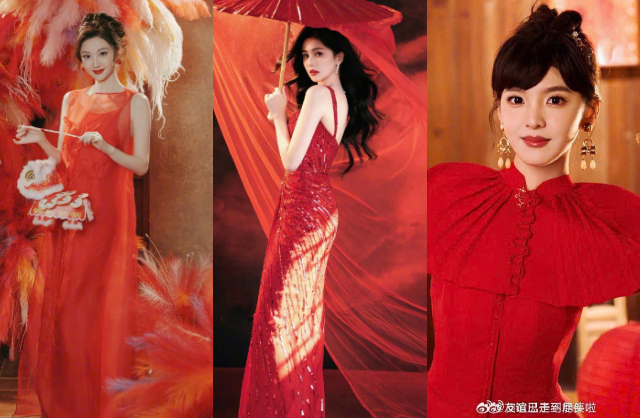 Dương Mịch, Mạnh Tử Nghĩa, Điền Hi Vi, Cảnh Điềm, Bạch Lộc, Chương Nhược Nam... cực "cháy" trong các bộ váy đỏ rực, khoe nhan sắc rạng rỡ vào ngày đầu năm mới. Ảnh: Sina.