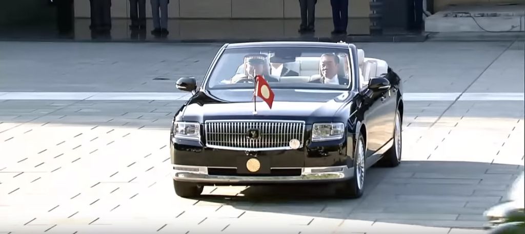 Nhật hoàng Naruhito sử dụng Toyota Century Royal – mẫu xe thiết kế riêng cho Hoàng gia Nhật, chỉ có 4 chiếc được sản xuất. Xe được trang bị các công nghệ bảo mật tối tân, tuy nhiên chi tiết cụ thể không được tiết lộ nhằm đảm bảo an toàn tuyệt đối.