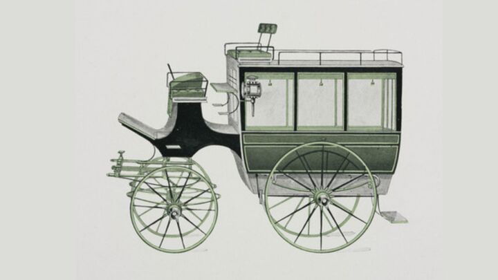 Từ trái qua phải: Xe ngựa Victoria (đời 1906) với thiết kế mui trần sang trọng, xe ngựa Brougham (đời 1903) dạng thùng kín và dòng xe Omnibus (đời 1906) chuyên chở khách chuyên dụng, tiền thân của các dòng xe khách ngày nay.