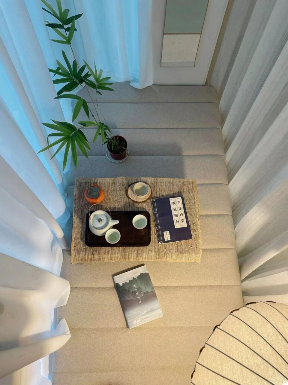 Chẳng hạn như, tạo 1 góc đọc sách nhỏ bằng cách trải đệm mềm và tựa lưng, lắp thêm đèn điều chỉnh ánh sáng và rèm, tạo không gian thư giãn riêng tư.