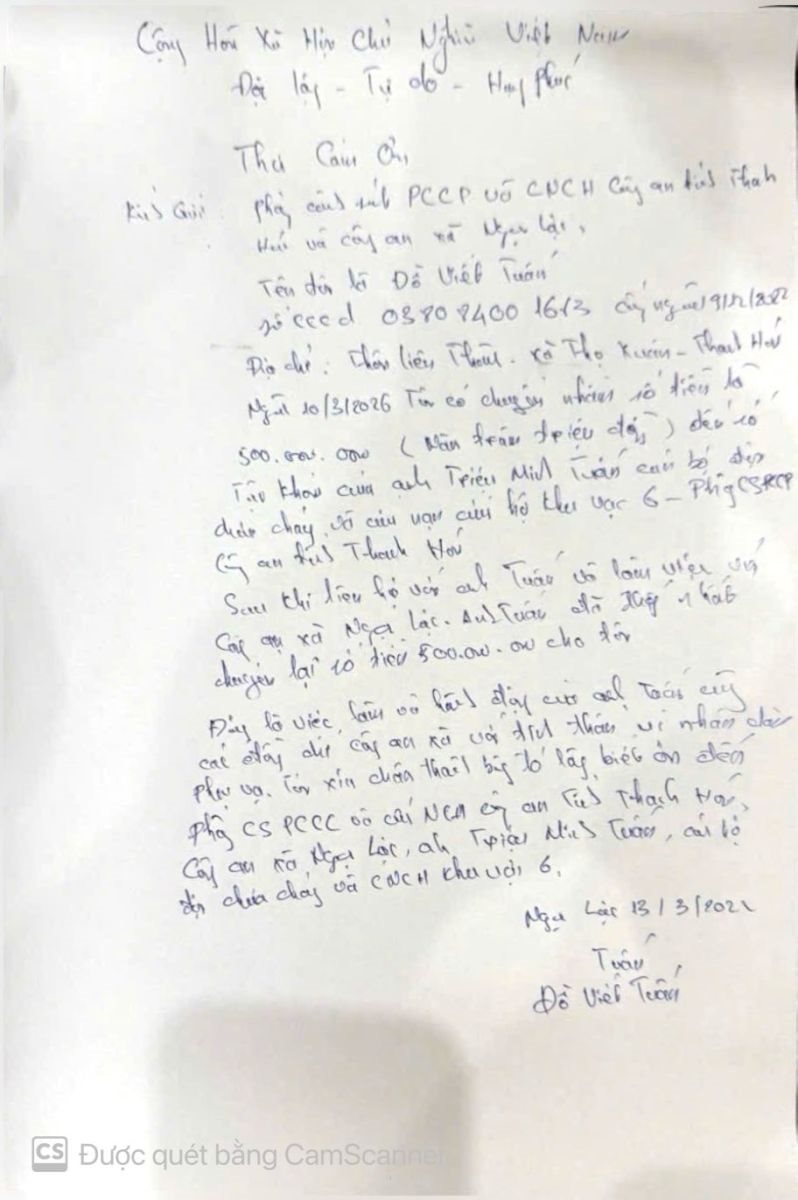 Sau khi nhận lại tài sản, anh Đỗ Viết Tuấn đã viết thư gửi tới lãnh đạo Phòng Cảnh sát PCCC và CNCH, Công an tỉnh Thanh Hóa để bày tỏ lời cảm ơn chân thành đối với đồng chí Triệu Minh Tuấn cùng các cán bộ, chiến sĩ đã hỗ trợ xác minh, giúp anh nhận lại số tiền chuyển nhầm.