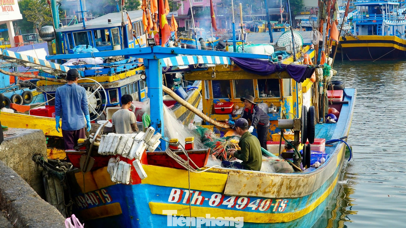 Ông Nguyễn Văn Duyệt - Phó Ban Điều hành Cảng cá Phan Thiết cho biết, mỗi ngày có hàng chục lượt tàu cá ra vào cảng, tăng mạnh so với ngày thường. Ban đã bố trí lực lượng túc trực, điều tiết tàu thuyền, đảm bảo an ninh trật tự, vệ sinh môi trường và an toàn bốc dỡ.