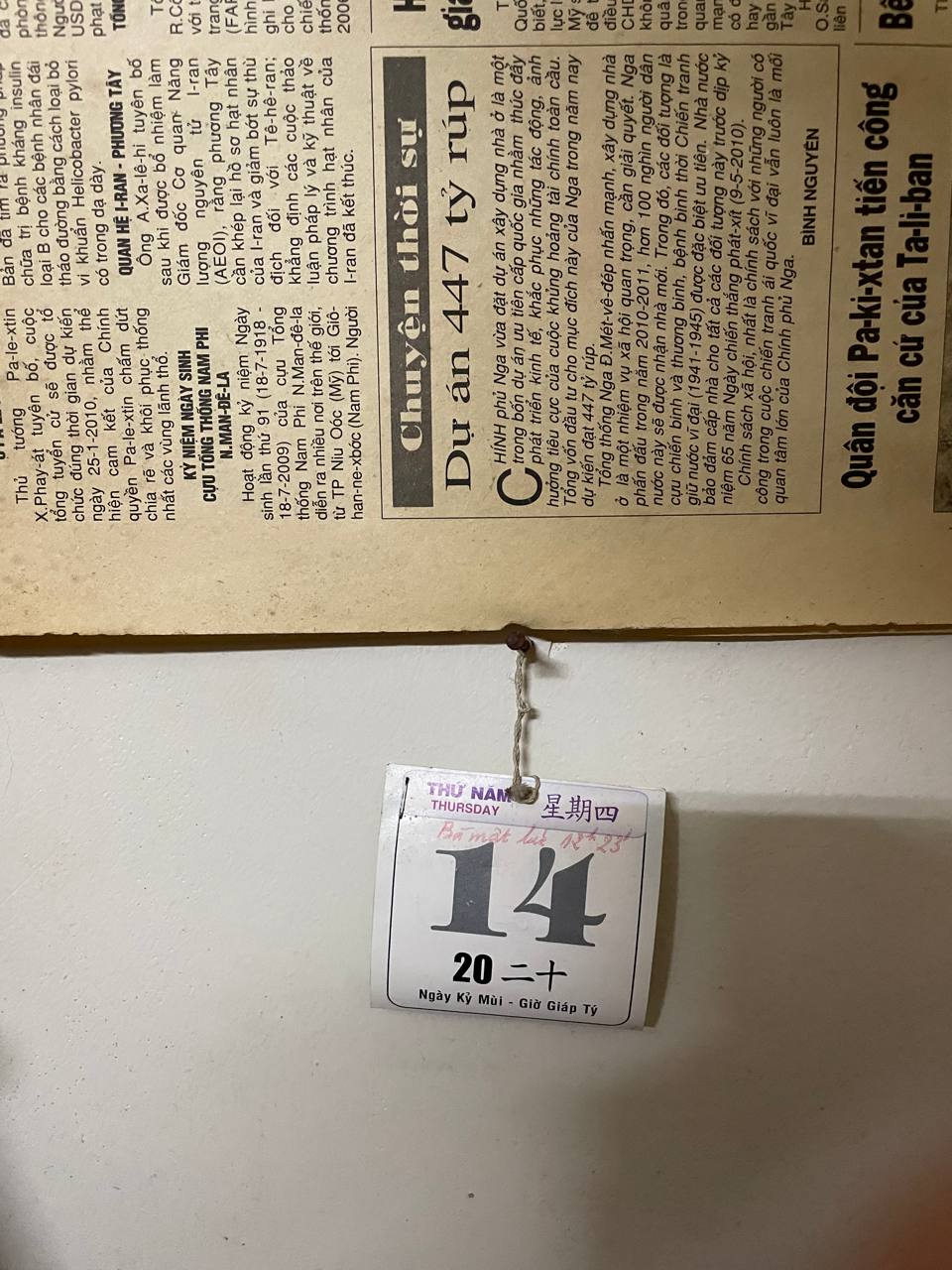 Trong phòng ông, căn phòng ông sống một mình sau 15 năm bà mất, đồ đạc lổn ngổn như một cái kho, rất nhiều đồ cũ. Ông có thói quen giữ lại lịch sau các năm - tôi không hiểu thói quen này lắm, cho đến khi lật giở từng tấm lịch.