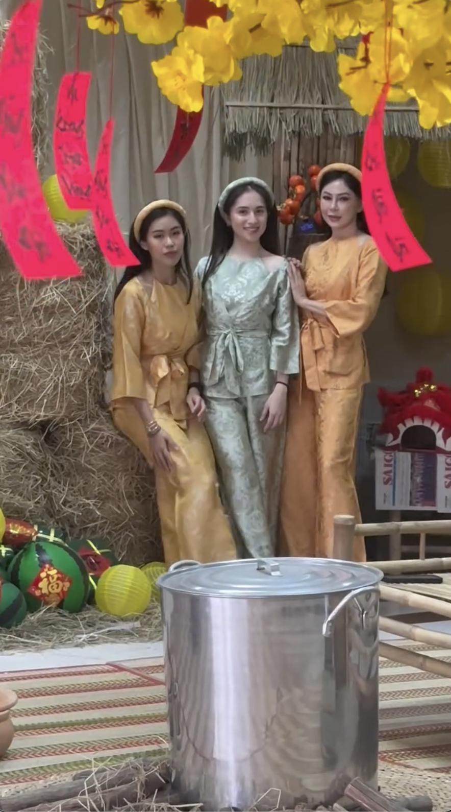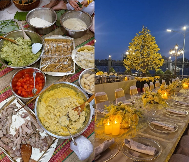 Hình ảnh cuộc thi gói bánh tét, tiệc tất niên trước đó của gia đình tỷ phú