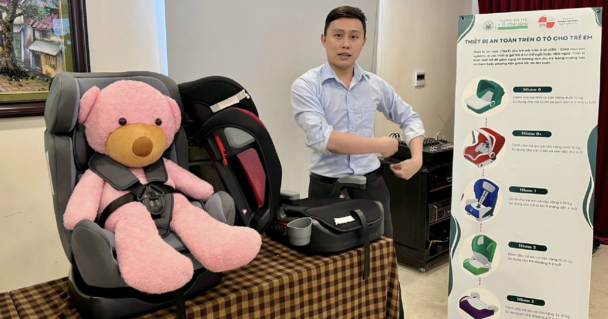 Theo đại diện Cục CSGT (Bộ Công an), với trẻ cao dưới 1,35 m, dây đai an toàn chỉ kéo tới phần đầu, cổ và không đảm bảo an toàn. Do vậy, trẻ em dưới chiều cao này phải có thiết bị an toàn trên ô tô.