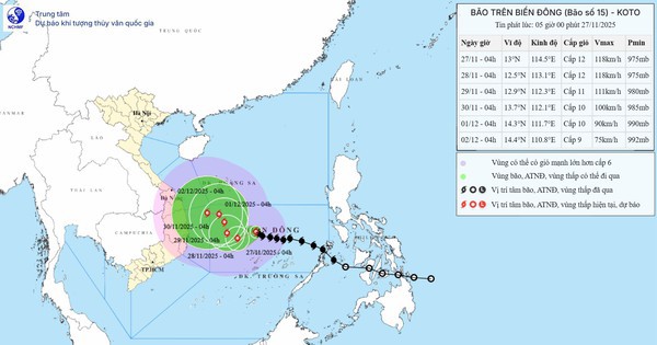 Trong 3 giờ qua, bão số 15 (bão Koto) gần như ít dịch chuyển. Dự báo từ ngày mai 28.11, bão bước vào giai đoạn suy yếu trước khi hướng vào các tỉnh miền Trung.
