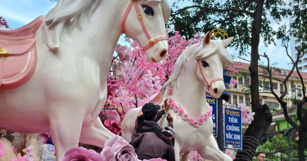Linh vật ngựa Tết Bính Ngọ tại Nha Trang (Khánh Hòa) với “phụ kiện” toàn màu hồng, đứng giữa biển hoa hồng 'gây sốt' mạng xã hội, du khách tấp nập đến check-in.