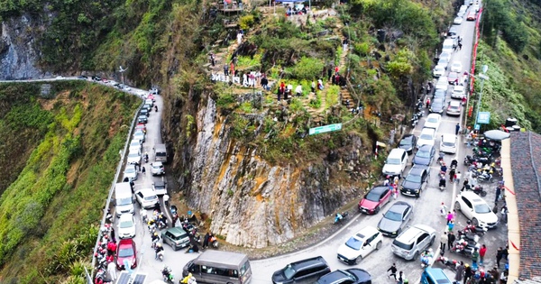 Chiều mùng 4 Tết, hàng nghìn du khách đổ lên Hà Giang (Tuyên Quang), xe nối dài trên các cung đèo, nhiều đoạn chỉ nhích từng mét do lượng phương tiện tăng đột biến.