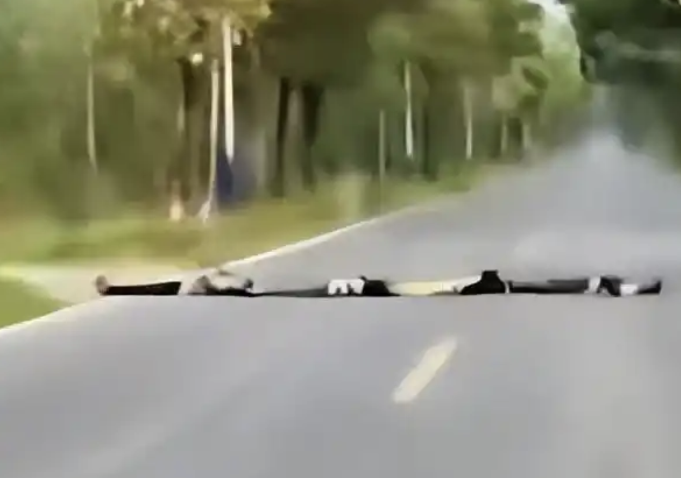 Nghe vậy, nam tài xế lập tức tắt chế độ hỗ trợ lái và đạp phanh khẩn cấp. Khi chiếc xe tiến gần hơn, hình dạng của những “vật thể” trên đường dần hiện rõ. Đó không phải túi nhựa hay rác, mà là bốn đứa trẻ đang nằm sát nhau giữa lòng đường, vờ làm gờ giảm tốc.
