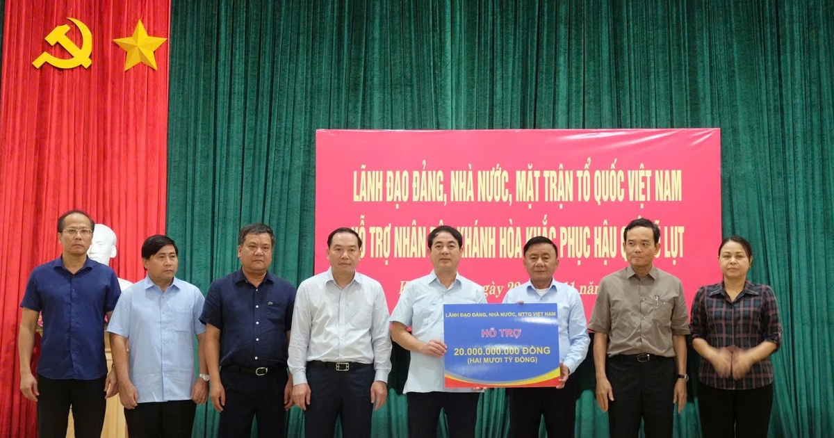 Đoàn công tác của Bộ Chính trị do Thường trực Ban Bí thư Trần Cẩm Tú dẫn đầu đã đến xã Diên Điền (Khánh Hòa) thăm hỏi, động viên, người dân tại địa phương chịu thiệt hại ngập lụt nghiêm trọng nhất tỉnh.