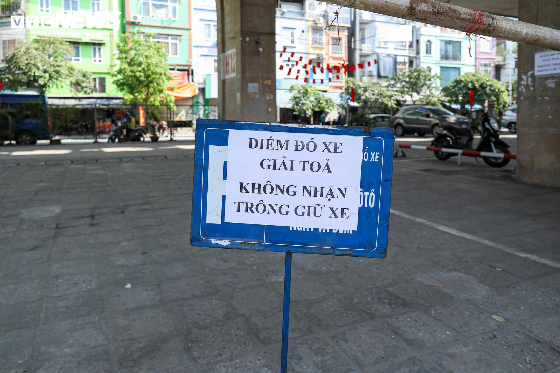 Các bãi xe dưới gầm cầu cạn Vĩnh Tuy đồng loạt treo biển "giải tỏa", không nhận trông giữ xe