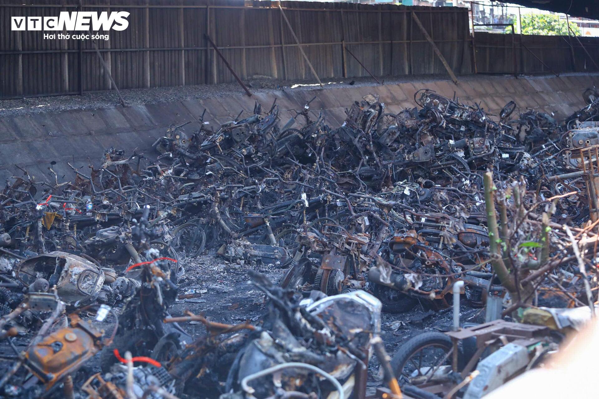 Chiều 30/8, hỏa hoạn xảy ra tại bãi trông giữ xe dưới chân cầu Vĩnh Tuy, số 335 Nguyễn Khoái, thiêu rụi khoảng 500 xe máy trên diện tích 300m².